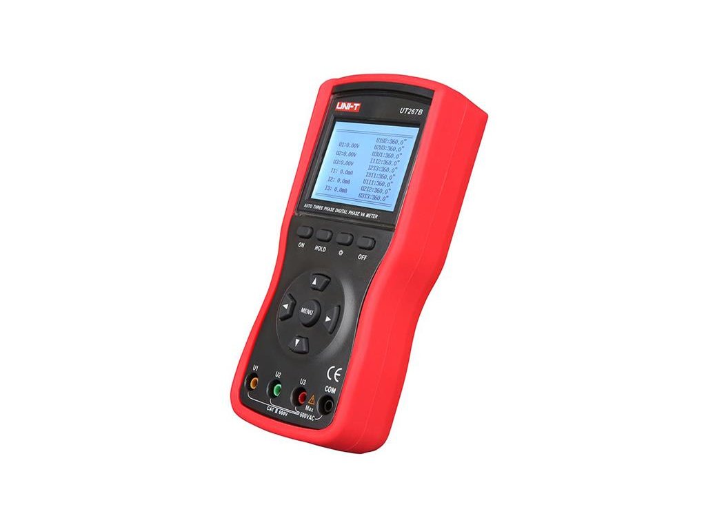 Analyzátor 3f sústavy UNI-T UT267BUT267B je inteligentný trojfázový vysoko presný digitálny fázový voltampérmeter špeciálne navrhnutý pre meranie v priemyselných pracovných podmienkach. Jedná sa o plne automatický, viacúčelový prístroj s nízkou spotrebou a jednoduchým ovládaním. Môžete merať obvody bez ich narušenia, prístroj je schopný merať trojfázové napätie a prúd, uhol fáz medzi napätím a prúdom alebo medzi trojfázovými napätiami alebo prúdmi, frekvenciu, sekvenciu fáz, aktívny, jalový a zdanlivý výkon, účinník, súčet vektorov, a tiež je schopný identifikovať zapojenie skupín transformátorov, indukčné a kapacitné obvody, sekundárne obvody a merania systému diferenciálnej ochrany zbernice. Prístroj môže tiež odpočítať diferenciálnej ochrannú fáze medzi jednotkami CT, skontrolovať a zaistiť správne zapojenie elektromerov. Bodový displej LCD má 240 bodov × 160 bodov a umožňuje zobrazenie vektorov napätí a prúdov. Prístroj umožňuje do vnútornej pamäte uložiť až 99 sád nameraných údajov, ktoré môžu byť následne cez rozhranie RS232 prenesené do PC. Dodávaný systémový softvér umožňuje online monitorovanie v reálnom čase, vyhľadávanie histórie, dynamické zobrazenie, odčítanie dát, ukladanie, hlásenia, tlač atď. Tieto funkcie spoločne predstavujú bezpečný, presný a pohodlný nový nástroj ponúkaný pre inšpektorov a elektrikárov.
