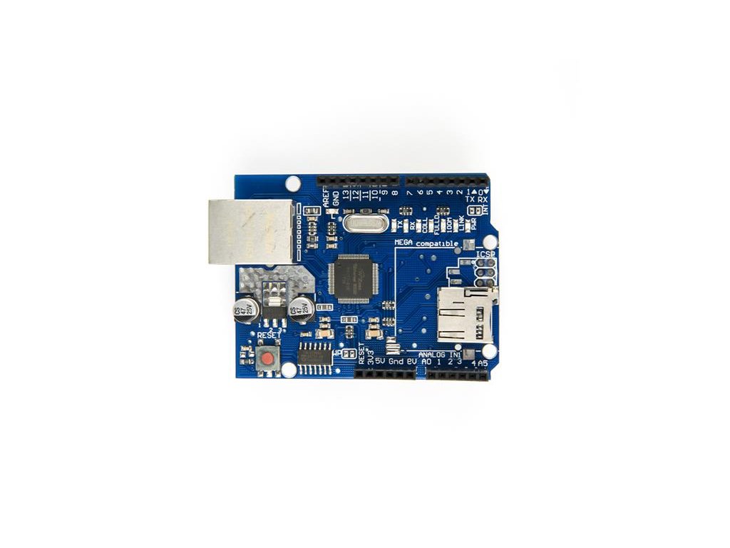 • Používa ethernetový čip Wiznet 5100, ktorý umožňuje použitie protokolov TCP aj UDP. Na programovanie je možné využiť knižnicu „Ethernet library“.