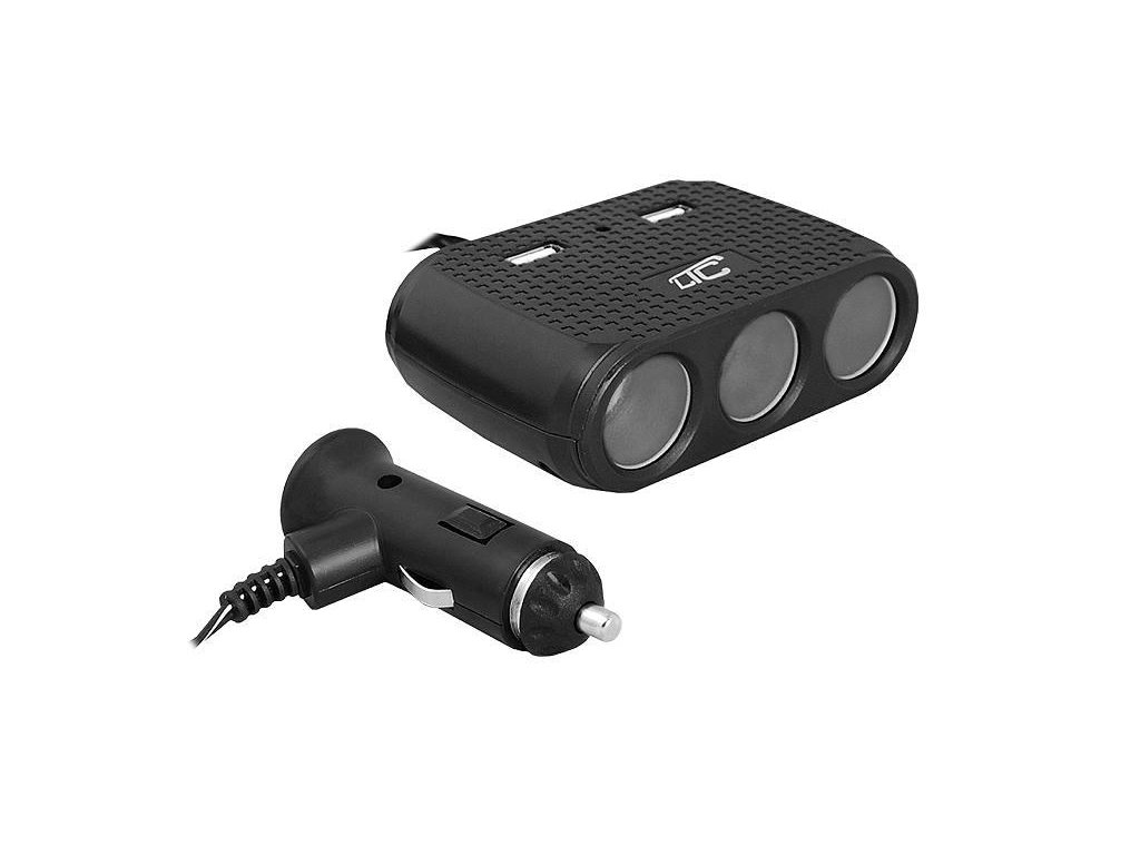 Autoadaptér napájací LTC LXAS7CLTC adaptér CAR FIRE 3 zásuvky 120W + 2xUSB 1A, 12 / 24V.