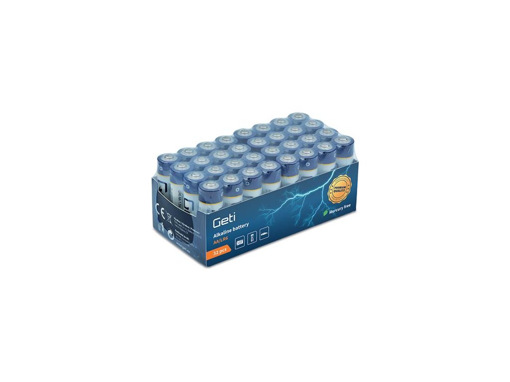 Batérie AA (LR6) alkalická GETI 1,5V 32ks