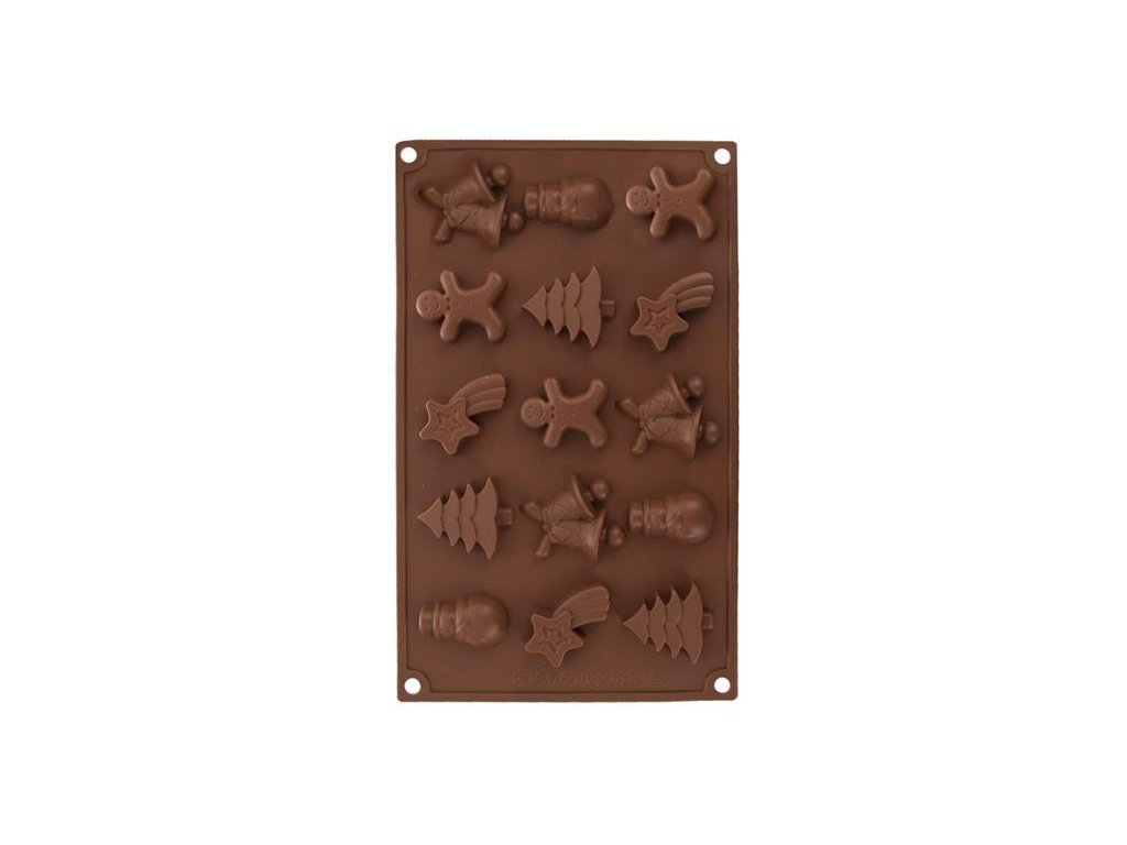Silikónová forma Vám vytvorí dobroty z čokolády vo vianočných tvaroch - stromček, kométa, zvončeky, panáčik, snehuliak. Znáša vysoké teploty (od -40 ° C do +220 ° C), nepreberá chute ani vône z použitých potravín. Vhodná do umývačky riadu. Môžete využiť tiež ako formu na ľad.