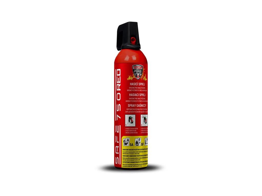 Univerzálny hasiaci sprej SAFE 750 RED certifikovaný podľa normy EN 16856 na hasenie požiaru typu A (pevných horľavých látok), F (jedlých olejov a tukov), E (elektrických zariadení pod prúdom do 1000 V). atď Možnosť použitia až do - 20 °C.