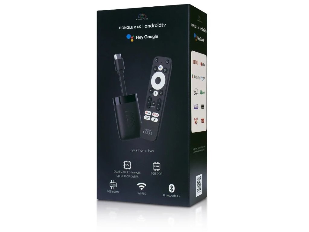 Homatics DONGLE R 4K patrí medzi najvýkonnejšie 4K multimediálne zariadenia na trhu v kompaktnom prevedení, ktorý z obyčajnej TV spraví výkonný smart TV. Operačným systémom je oficiálny Android TV 11 s automatickou aktualizáciou. V tomto malom zariadení sa skrýva výkonný procesor Amlogic S905Y4, ktorému robí podporu 2GB DDR RAM a 32GB eMMC Flash.
