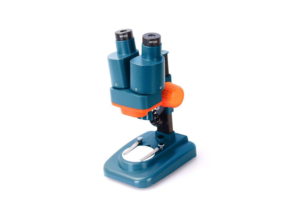 Mikroskop LEVENHUK LabZZ M4Stereomikroskop Levenhuk LabZZ M4 je ideálny na štúdium veľkých minerálov, hornín, mincí, vzoriek pôdy, rastlín alebo hmyzu. Tento model je určený špeciálne pre deti. Mikroskop je pomerne malý, ľahký a ľahko ovládateľný - mladému biológ pomôže vykonávať skutočné vedecké experimenty a dozvedieť sa viac o svete okolo nás. Mikroskop má praktickú binokulárne hlavu a objektív so zväčšením 2x. Môžete použiť dva 20x širokouhlé okuláre, ktoré sú súčasťou sady, a získať tak celkové zväčšenie 40x. Stereoskopický obraz sprostredkuje aj najmenšie detaily pozorovaného objektu. Veľké zorné pole umožňuje študovať väčšie objekty a zväčšenie 40x pomáha podrobnejšie študovať štruktúru ich povrchu.