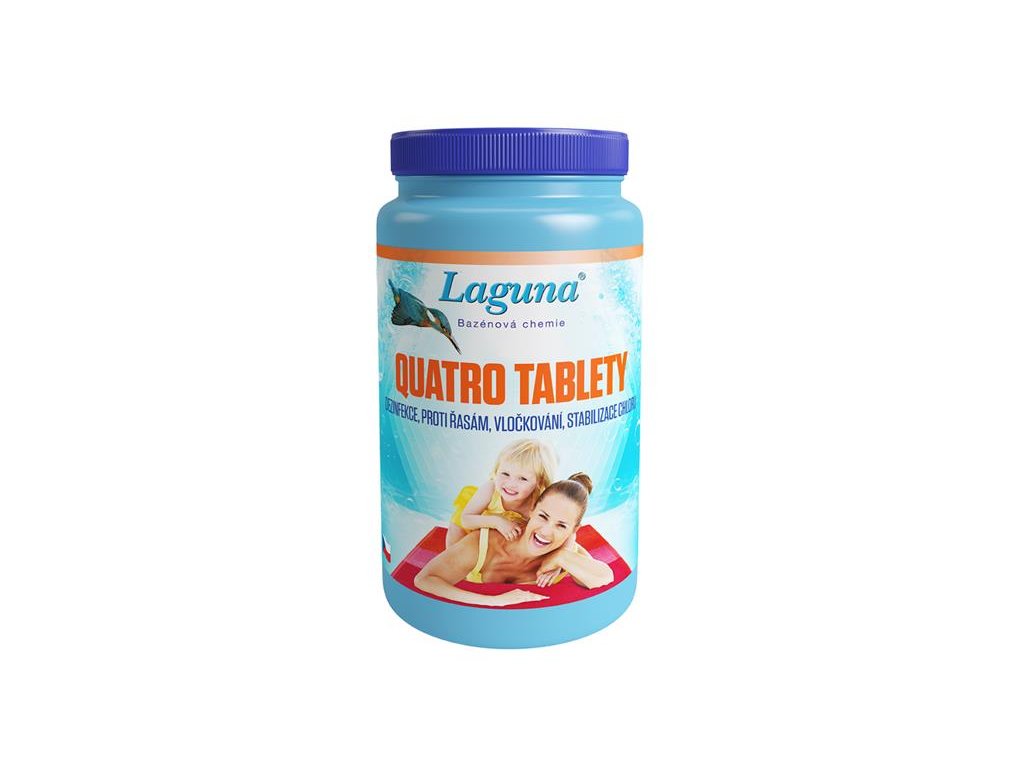 Tablety určené na pravidelnú dezinfekciu bazénovej vody s viacúčelovým užitím. Laguna Quatro (200g tableta) je viacúčelový prípravok určený na pravidelnú dezinfekciu bazénovej vody, zabránenie vzniku rias, odstránenie nečistôt pomocou flokulácie a stabilizáciu chlóru.