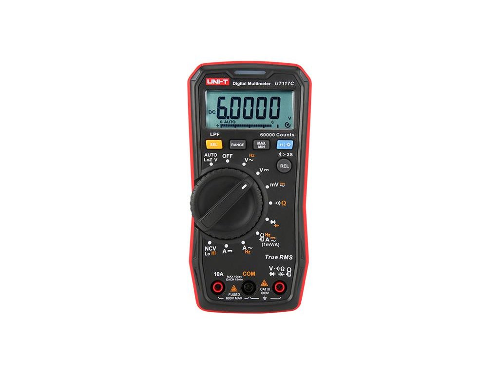 Multimetr UT117C Vysoko presný digitálny multimetr True RMS. ktorý má meranie napätia AC/DC 600V, meranie prúdu 10A AC/DC, meranie LPF, funkcia Bluetooth atď. Hlavné rysy sú rýchla odozva, vysoká presnosť, malé rozmery a jednoduchá obsluha a presnosť produktu možno zaručiť aj po páde z 2 metrov. Je to dobrý nástroj pre elektrikára. UT117C je vybavený digitálnym LCD displejom. ochranou proti přetížení ve všetkých rozdielov a jedinečným vzhľadom.