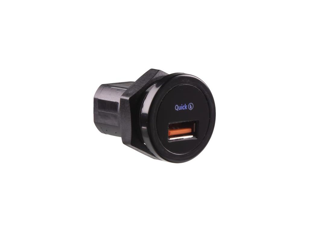 USB nabíjačka do panelu, QC3.0, s modrým LED podsvietením.