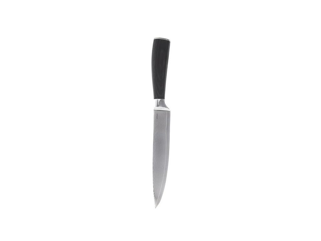 Kuchynský nôž z damaškovej ocele nielen na profesionálne využitie sa hodí pre amatérskych kuchárov, domácich gurmánov i labužníkov. Univerzálne využitie v kuchyni. Čepeľ je vyrobená z kvalitnej 67-vrstvovej damaškovej ocele vzniknutej z dvoch rôznych ocelí, ktoré sú zahrievaním spojené do jedného celku. Damasková oceľ je tvrdá, odolná voči opotrebovaniu, vysoko stabilná a má dlhú životnosť. Krájanie je presné a dokonalé. V prípade nutnosti nabrúsenia ostrie použite kuchynský brúsik, ocieľku. Rukoväť noža je vyrobená z pakka dreva (pakkawood) – tlakovo spracovaného kompozitu dreva a živice, ktorý je stabilný, tepelne a vlhkostne odolný aj voči mechanickému opotrebovaniu.