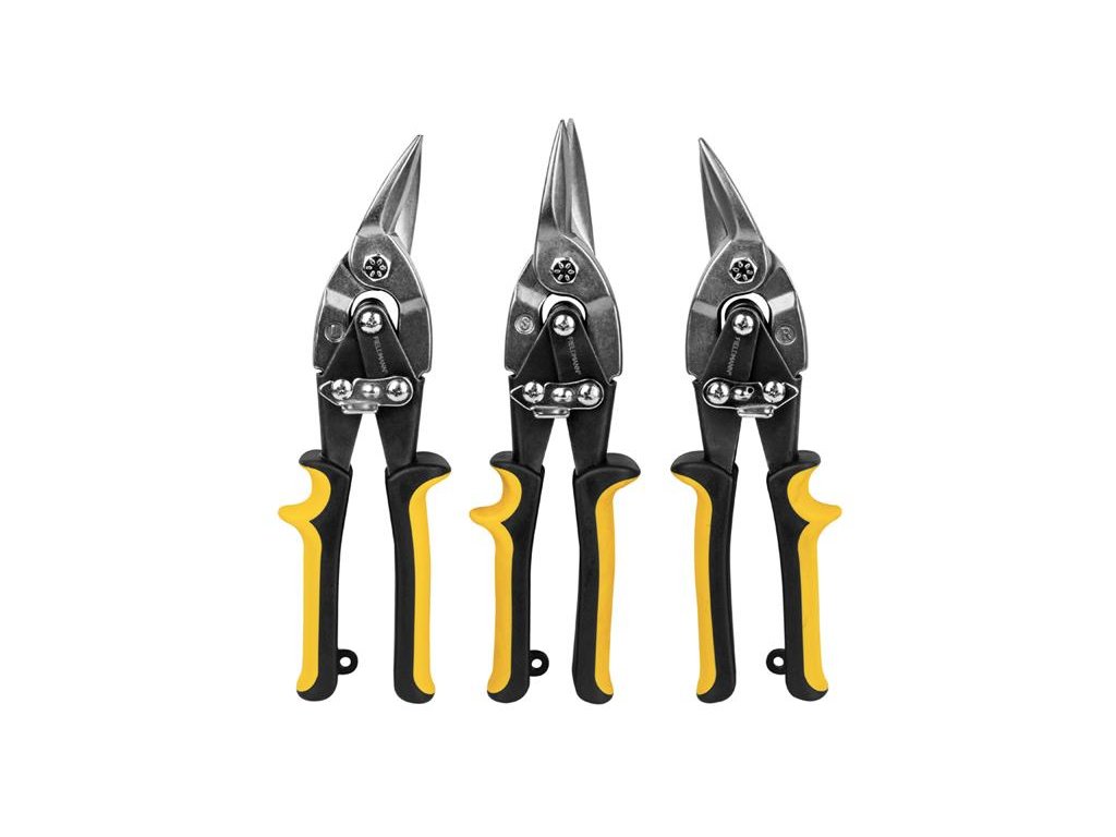 Nožnice na plech FIELDMANN FDNP 3301 3ksPre menšie práce na vašej záhrade, v dielni alebo okolo domu určite nájdete uplatnenie tento 3 dielny set nožníc na plech značky FIELDMANN. V sade nájdete nožnice na pravé, ľavé a rovné strihanie plechov a tvrdých materiálov, potrubí, kovov a ďalšieho podobného materiálu. Masívne a ergonomicky tvarované držadlá sa postarajú o pohodlné držanie. Na vyvedenie čepele bola použitá kvalitná kovaná oceľ. Dĺžka nožníc je 250 mm pri hmotnosti 0,4 kg/ks.