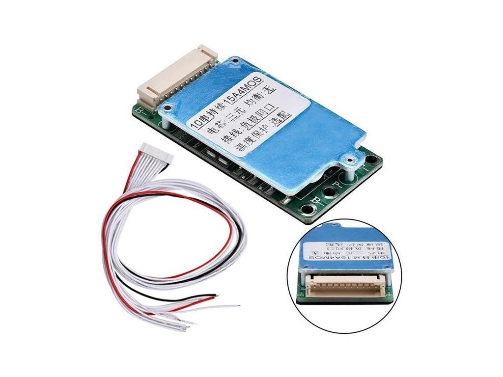Ochranný obvod s balancérom pre 10 Li-Ion článkov 18650. Je vybavený strážením teploty. Primárne je určený na napájanie elektrických kolobežiek