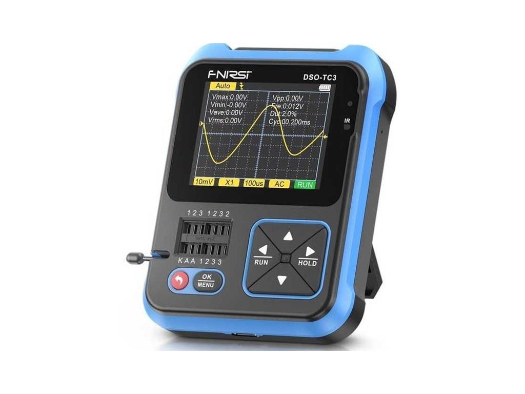 Osciloskop 500kHz, generátor funkcií a tester súčiastok FNIRSI DSO-TC3, je kompaktný digitálny osciloskop s niekoľkými funkciami: