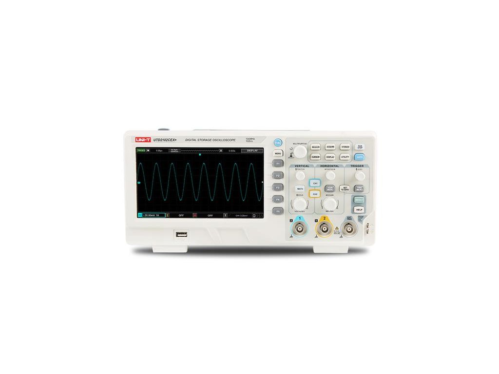 Osciloskop UTD2102CEX+ je multifunkčný, vysoko výkonný stolný digitálny osciloskop zo série UTD2000CEX+., ktorý je ľahko ovládateľný, s veľmi dobrými technickými špecifikáciami, s dvoma analógovými vstupnými kanálmi, ktorý ponúka šírku pásma 100 MHz so vzorkovaním 1 GS/s. Je vybavený sedempalcovým farebným TFT displejom s rozlíšením 800 x 480 pixelov.