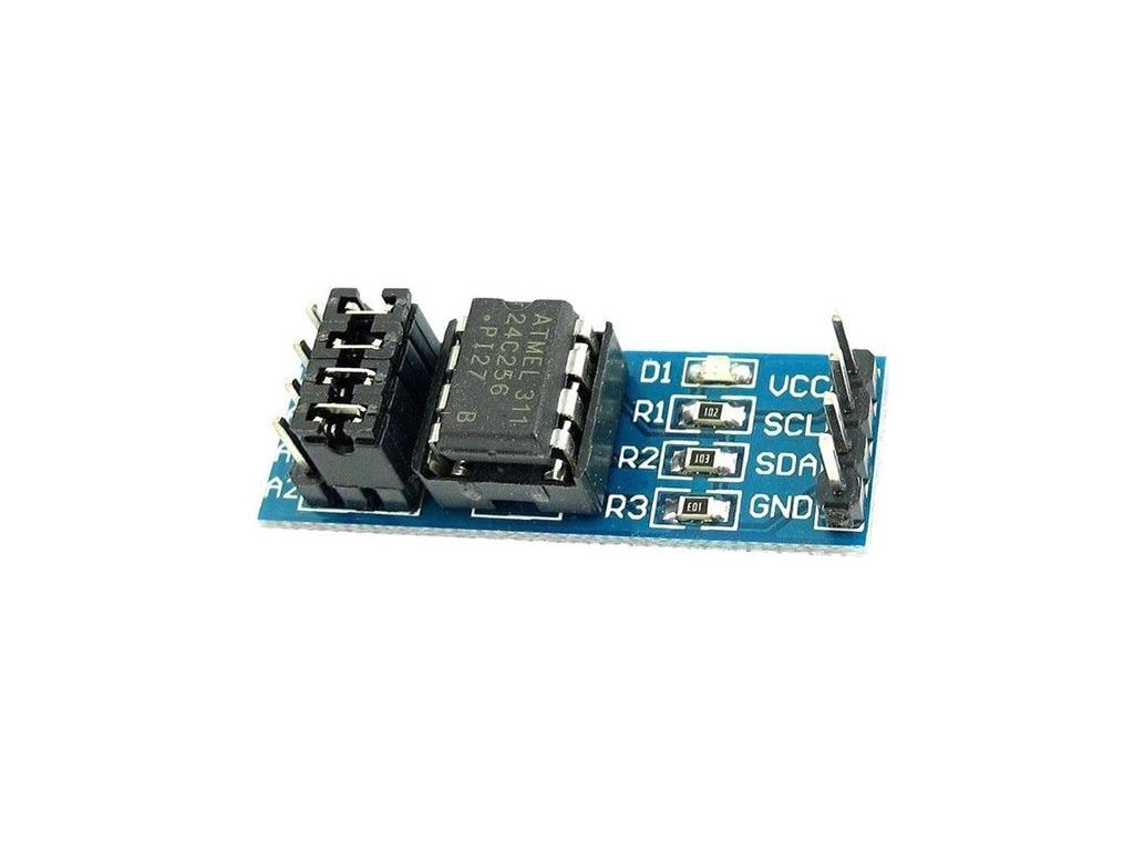 Pamäť I2C EEPROM s AT24C256 pre Arduino. Sériová eeprom pamäť 32kb s komunikáciou cez I2C zbernicu. Modul na ukladanie dát, ktoré sa nezmestia do mikrokontroléra. Vhodné napr. ako dataloger, pamäť pre nastavené parametre, zdroj dát a podobne.