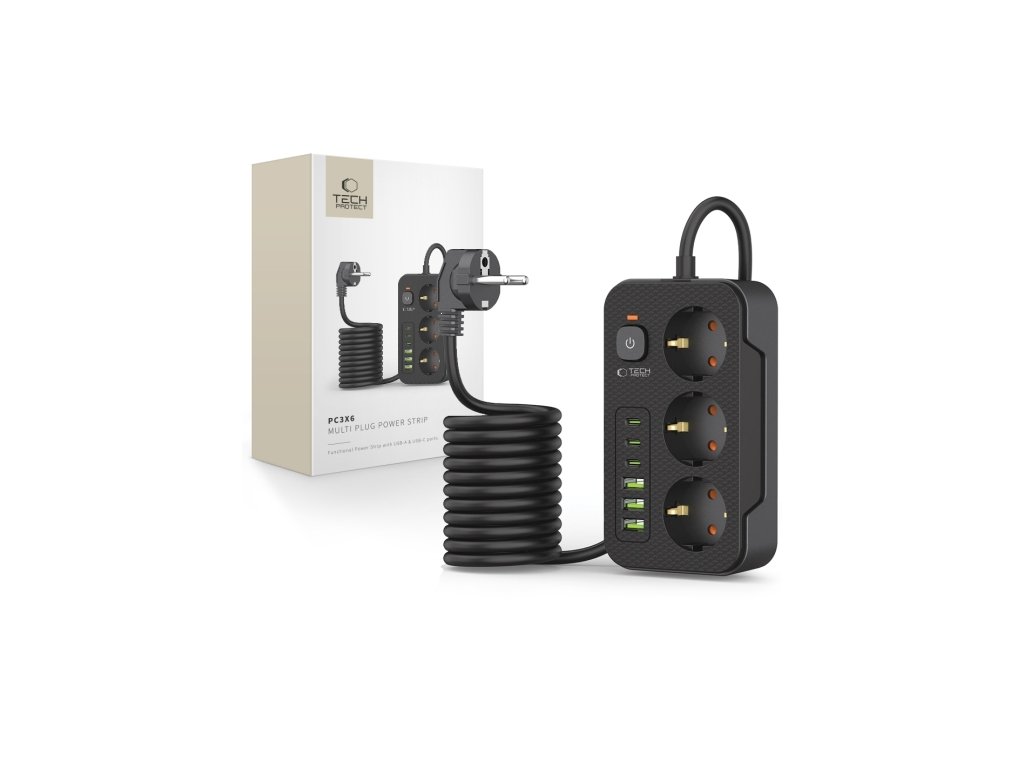 Funkčný predlžovací kábel Tech-Protect PC3X6 s ďalšími USB portami je ideálnym riešením pre ľudí, ktorí hľadajú multifunkčné zariadenia na napájanie a nabíjanie svojich zariadení. Je vybavený tromi sieťovými zásuvkami, tromi portami USB-A a tromi portami USB-C a umožňuje pripojiť niekoľko zariadení súčasne a zaistiť tak poriadok a bezpečnosť.