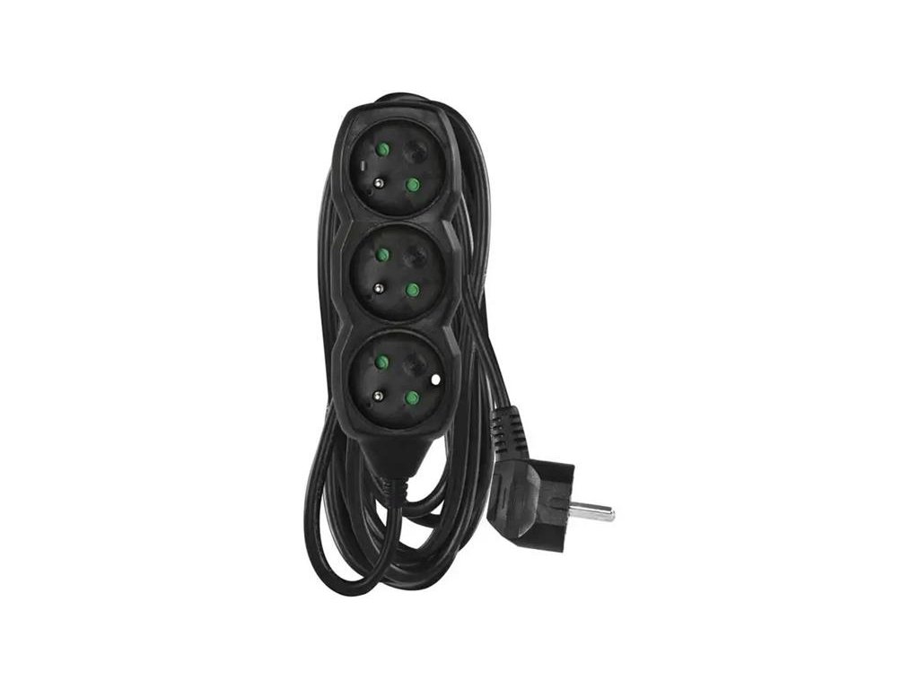 Predlžovací kábel 5 m / 3 zásuvky / čierny / PVC / 1,5 mm2.