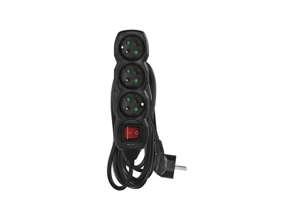 Predlžovací kábel 5 m/3 zásuvky/s vypínačom/čierny/PVC/1,5 mm2.