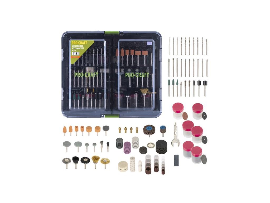 Sada nástavcov Procraft GK-418 je univerzálny a bohato vybavený set, ideálny pre široké spektrum brúsenia, rezania, leštenia a ďalších úprav povrchov. S 418 ks príslušenstva poskytuje maximálnu flexibilitu pre profesionálne aj hobby použitie s priamymi brúskami.