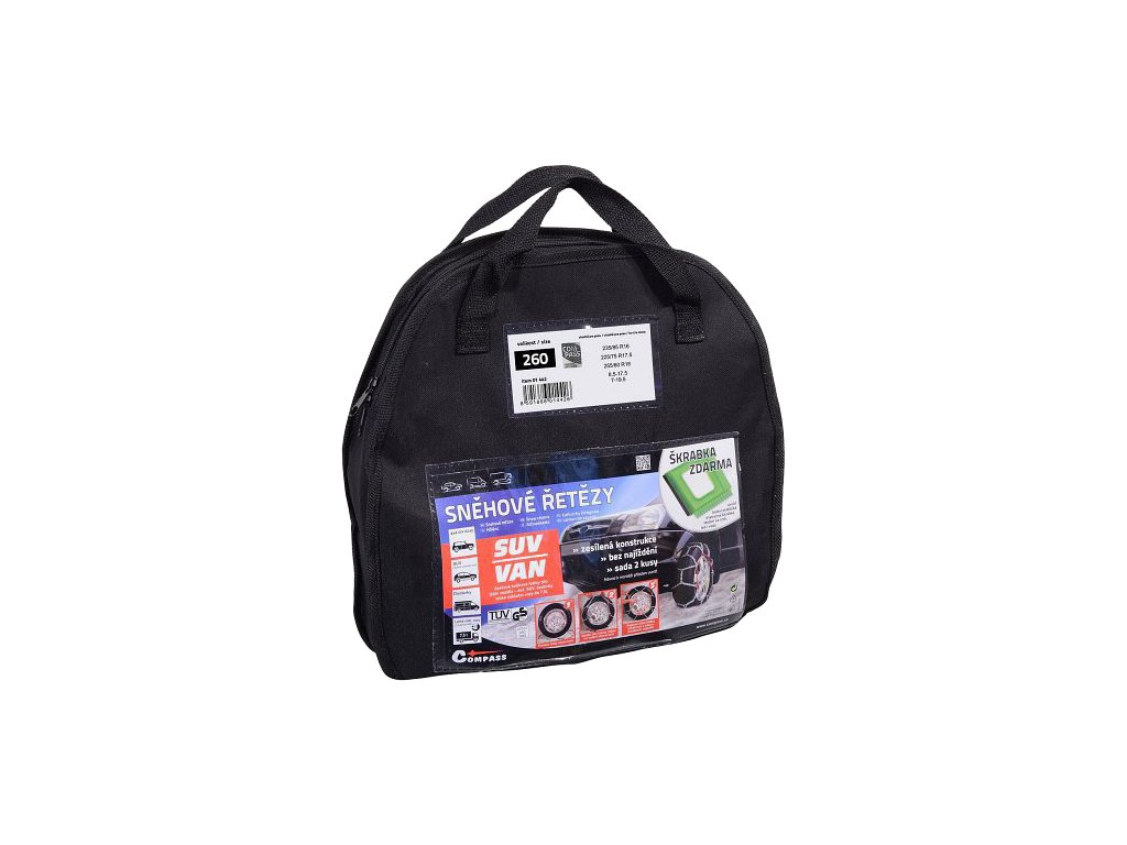Reťaze snehové SUV-VAN vel. 260Snehové reťaze vyvinuté priamo pre vozidlá SUV, s veľmi jednoduchou a rýchlou montážou i demontážou. Možno použiť aj pre dodávky a obytné vozidlá.