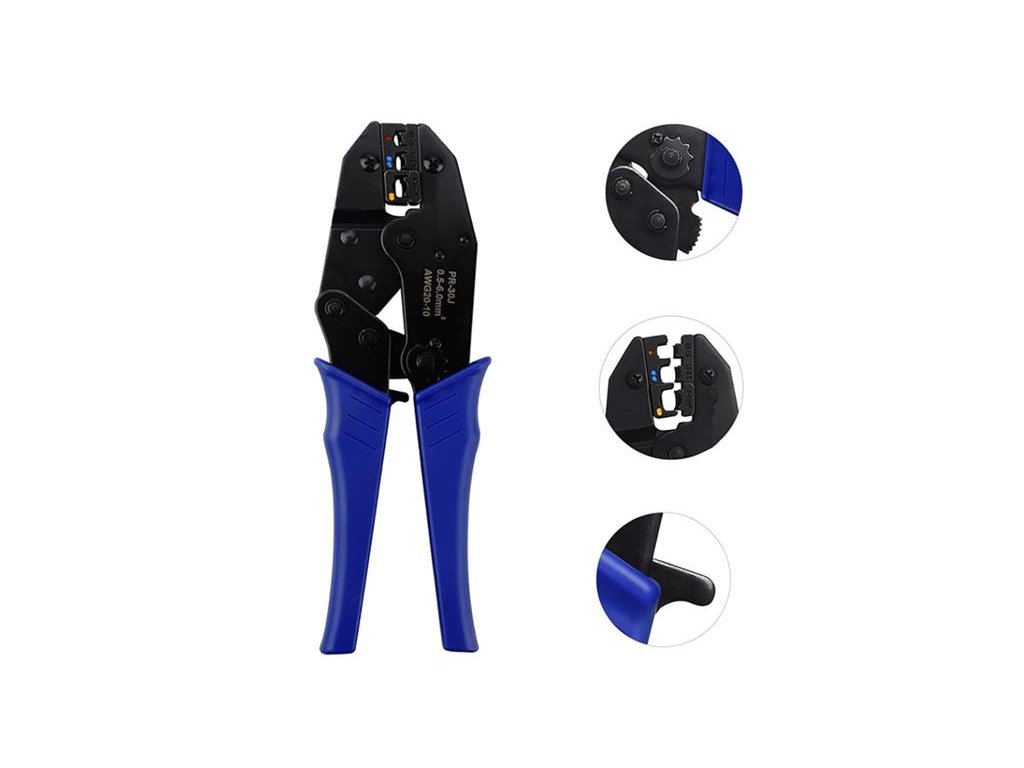 S pomocou robustnej sady pozostávajúcej z krimpovacích klieští a 700 káblových ôk môžete rýchlo a presne vykonávať elektrické zapojenie. Nástroj je navrhnutý pre prácu v širokom rozsahu krimpovania (tri veľkosti farebne odlíšených krimpovacích čeľustí) a je vybavený spojkovým mechanizmom, ktorý nevyžaduje použitie veľkej sily a zaisťuje správne krimpovanie. Farebne kódované káblové koncovky a veľkosti krimpovacích konektorov uľahčujú prácu. Štandardné káblové oká sú prehľadne roztriedené v praktickej úložnej krabici.