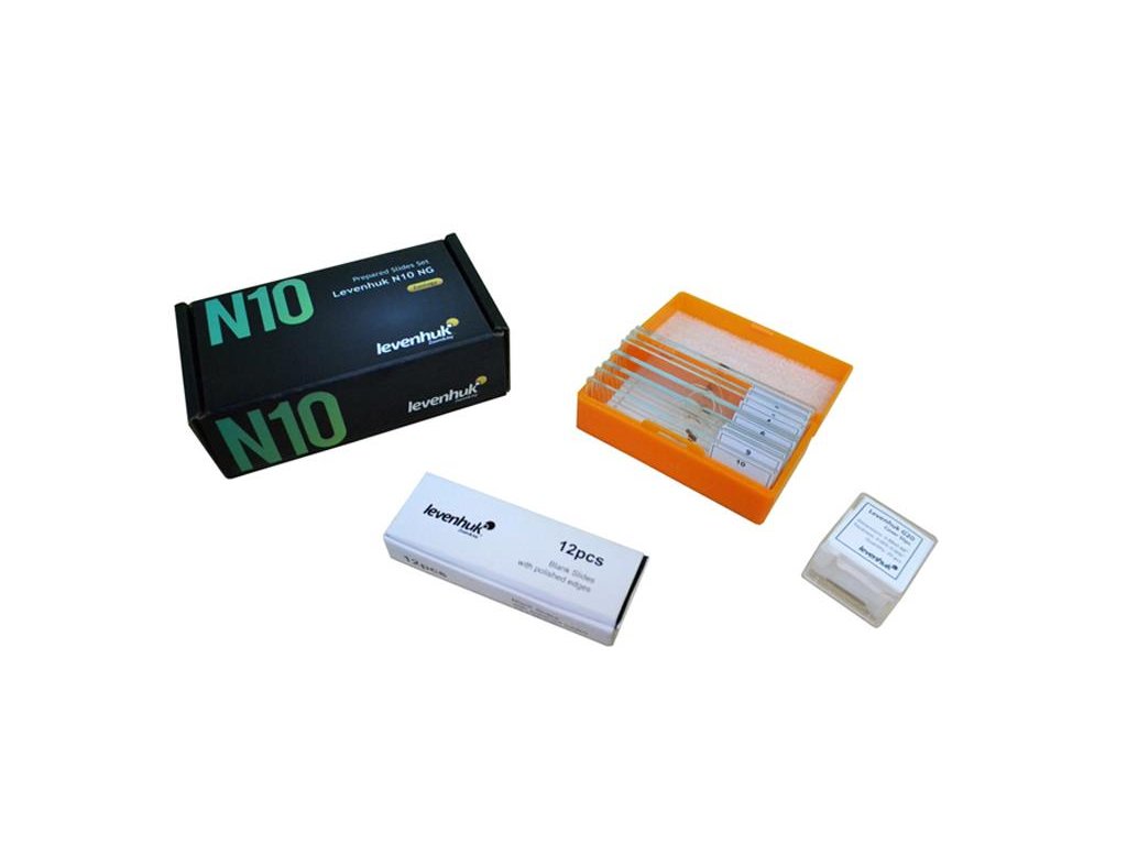 Sada preparátov LEVENHUK N10 NGAby bolo možné nejaký vzorka rastliny alebo iného materiálu skúmať pod mikroskopom, musí prejsť dôkladnou prípravou: veľmi tenký rez materiálu je nutné položiť na podložné sklíčko a cez neho položiť krycie sklíčko. Táto sada preparátov už obsahuje kompletne pripravené vzorky biologického materiálu, takže môžete stráviť viac času ich štúdiom. Súčasťou sady je niekoľko prázdnych podložných a krycích sklíčok, pomocou ktorých si môžete pripraviť svoje vlastné mikroskopické preparáty. Podložné a krycie sklíčka sú vyrobená z vysoko priehľadného skla a zaisťujú pohodlné pozorovanie bez odleskov či skreslenia. Hotové preparáty, podložné aj krycie sklíčka možno použiť s ľubovoľným modelom mikroskopu.