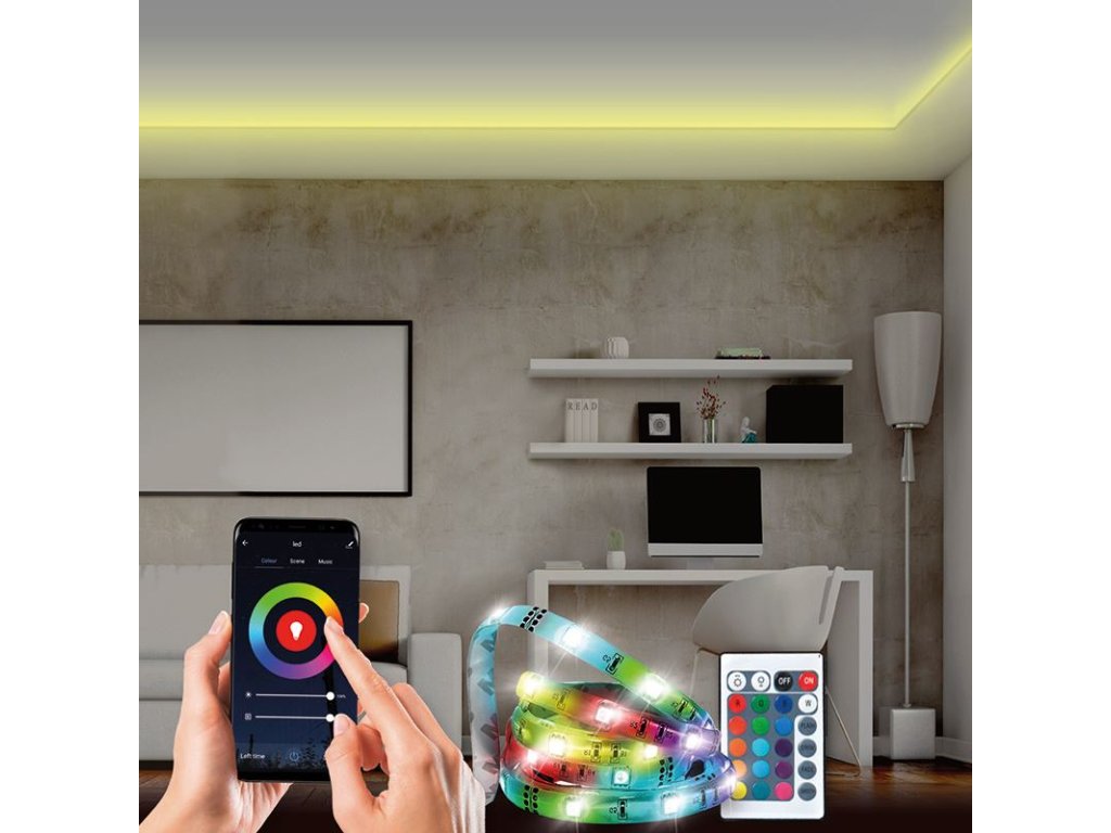 - LED SMART WIFI pásik je ovládaný chytrým telefónom pomocou aplikácie v ČJ, AJ a ďalších jazykoch. Podporuje Wifi 2,4GHZ, Android 4.1 a vyšší IOS 8.0 a vyšší. Umožňuje nastaviť rôzne farby svetla (RGB), odstíny bielej (3000-6500K) a intenzitu svetla. LED pásik je možné ovládať aj diaľkovým ovládačom, ktorý je súčasťou balenia.