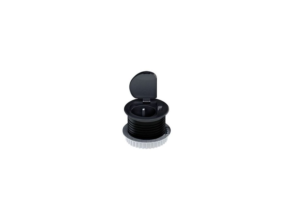 Solight USB vstavaná zásuvka s viečkom, 1 zásuvka, plast, dĺžka 1,5m, 3x 1mm2, USB 2100mA, strieborn