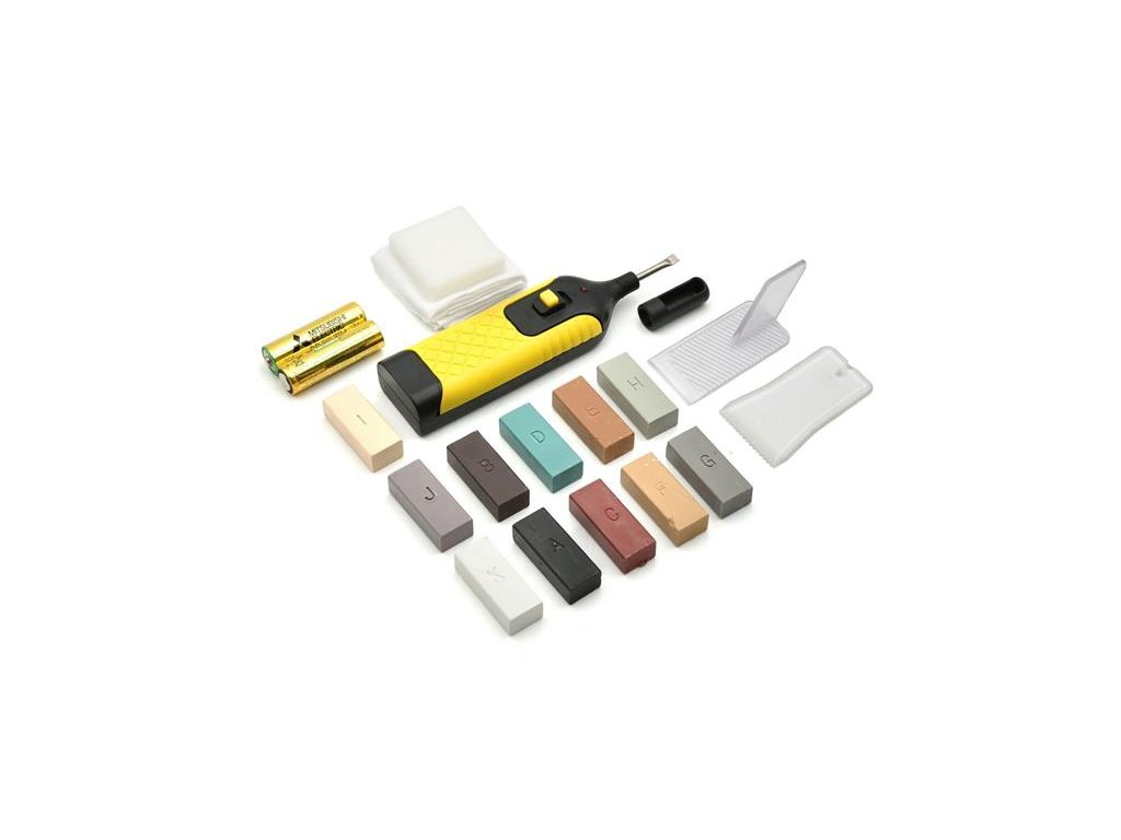 Praktická sada na opravu poškodených dlaždíc, kameňa, keramiky a pod. od značky GEKO. Táto sada umožňuje esteticky a lacno zamaskovať praskliny, ryhy a dokonca aj vyvŕtané diery. Výplne v rôznych farbách, ktoré je možné medzi sebou ľubovoľne miešať, umožňujú takmer dokonalé farebné zladenie s opravovaným povrchom. Typy poškodenia, ktoré je možné opraviť: odštiepky, praskliny, dutiny, vyvŕtané diery