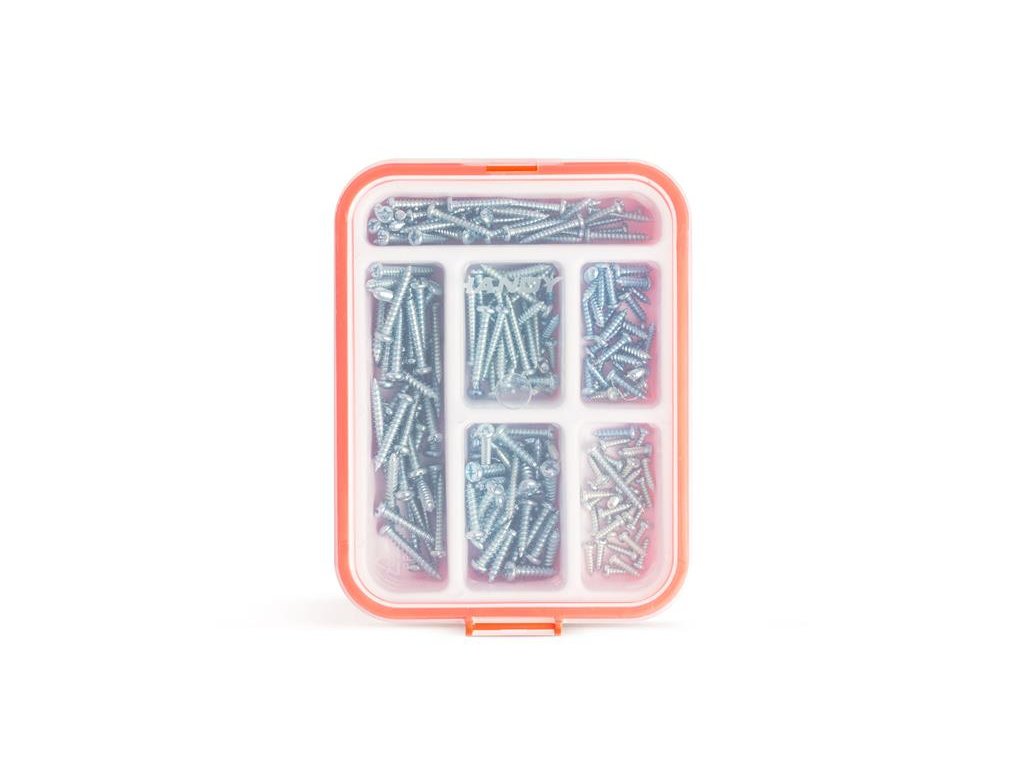 Pozinkované oceľové skrutky rôznych veľkostí v jednej sade. Pre domácich kutilov sú potrebné pri každej práci skrutky.Vďaka samoreznému závitu nie je potrebné žiadne predvŕtanie,takže proces pripevnenia je možné vykonať rýchlo a ľahko!Praktické priehľadné veko zabezpečuje výbornú prehľadnosť.