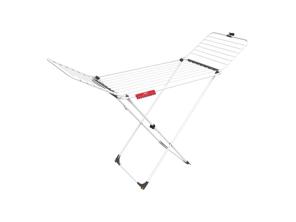 Sušiak na bielizeň VILEDA EXTRA 157215Sušiak so silnými hliníkovými drôtmi, ktoré zabraňujú nadmernému pokrčeniu bielizne a uľahčujú tak žehlenie. Vybavený ďalšími doplnkami, ako je držiak drobného prádla, ktorý šetrí miesto, kolieskami pre jednoduché presúvanie a bezpečný zámok, ktorý umožňuje presúvanie aj plne naplneného sušiaku. Bezpečnostný zámok bočných krídel, ľahká manipulácia a pohodlné uskladnenie. Silné drôty zabráni krčeniu bielizne. Má pevný a robustný oceľový rám s bezpečnostným zámkom, ktorý zabraňuje náhodnému uzavretie a je s držiakom pre malé predmety a kolieska pre jednoduché premiestňovanie sušiaku. Kompaktná veľkosť a bezpečný skladací mechanizmus pre jednoduché skladovanie.