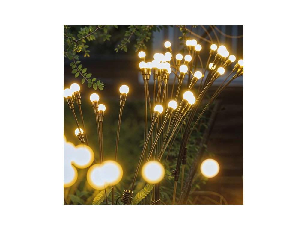 Premeňte svoju záhradu na báječné prostredie s touto solárnou, zapichovacou lampou!Svietidlá s guľovitými koncami vyčarujú svojim teplým svetlom čarovný svet svetlušiek a vytvárajú tak jedinečnú atmosféru po zotmení. Môžete ju použiť aj ako smerové svetlo alebo ako dekoráciu.Hneď ako sa zotmie, svetlo sa automaticky zapne a vypne pri východe slnka.Počas dňa solárne články premieňajú slnečnú energiu na elektrickú energiu a ukladajú ju do batérie.Jednoduchá inštalácia, nie je potrebná žiadna kabeláž - stačí ju zapichnúť do zeme a užite si prirodzené, mäkké osvetlenie vo vašej záhrade.Perfektná voľba na zdobenie chodníkov, záhonov alebo terás.