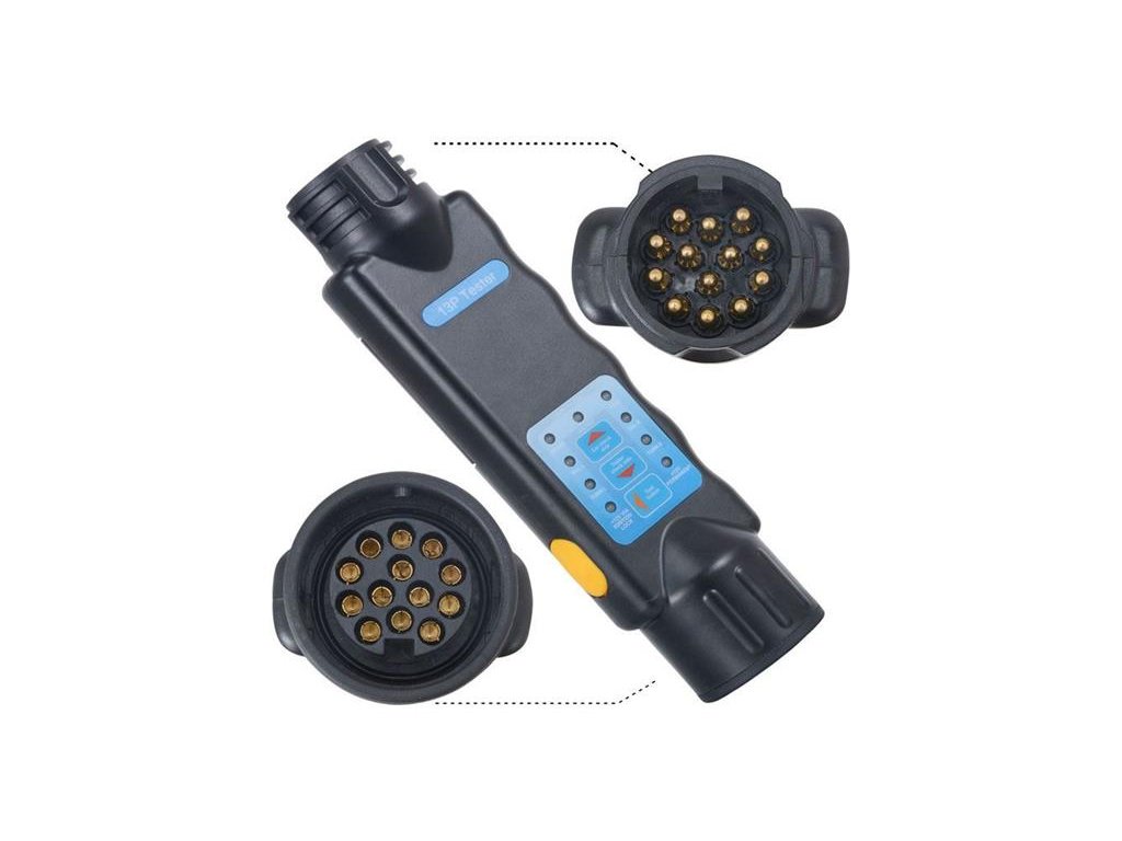 Praktický tester 13 pólových zásuviek aj vidlíc prívesných vozíkov, karavanov aj ťažných vozidiel. Napájanie 12V.