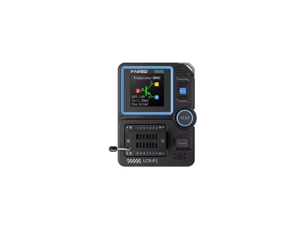 FNIRSI LCR-P1 je multifunkčný digitálny tester súčiastok a tranzistorov, ktorý umožňuje rýchle a presné testovanie rôznych elektronických súčiastok, ako sú tranzistory, diódy, kondenzátory, rezistory, induktory, súčiastky MOSFET a podobne. Tester LCR-P1 je vybavený 1,44 "farebným displejom, čo umožňuje jednoduché čítanie výsledkov testov. Zobrazuje všetky dôležité parametre, ako sú namerané hodnoty odporu, kapacity, indukčnosti alebo špecifikácie tranzistorov. Farebný displej tiež zobrazuje detaily o type a zapojenie testovaných súčiastok, ktoré sú automaticky identifikované testerom. Tester tiež podporuje analýzu. ladenie a údržbe diaľkových ovládačov.