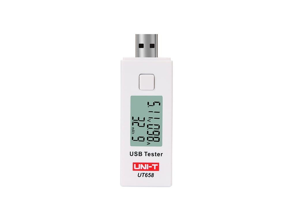 USB tester UNI-T UT658Tento tester slúži vďaka jednému vstupnému a jednému výstupnému konektoru na meranie nielen aktuálnych hodnôt napätia a prúdu odoberaného z USB, ale tiež počíta celkový prúd, z ktorého vypočítava nabitú kapacitu. Tester je vhodný pre overenie kapacity POWERBANK, batérií v mobilných telefónoch, tabletoch a všetkého, čo sa nabíja cez tento port. Môžeme tiež zmerať odber Flash disku alebo externého disku, pri ktorých často dochádza k prekračovaniu povolených limitov USB 2.0. K dispozícii je 10 pamätí, ktoré nie sú závislé na napájanie, takže si aj po odpojení a znovu zapojenie pamätajú poslednú hodnotu.