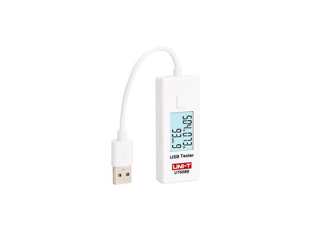 USB tester UNI-T UT658BTento tester slúži vďaka jednému vstupnému a jednému výstupnému konektoru na meranie nielen aktuálnych hodnôt napätia a prúdu odoberaného z USB, ale tiež počíta celkový prúd, z ktorého vypočítava nabitú kapacitu. Tester je vhodný pre overenie kapacity POWERBANK, batérií v mobilných telefónoch, tabletoch a všetkého, čo sa nabíja cez tento port. Môžeme tiež zmerať odber Flash disku alebo externého disku, pri ktorých často dochádza k prekračovaniu povolených limitov USB 2.0. K dispozícii je 10 pamätí, ktoré nie sú závislé na napájanie, takže si aj po odpojení a znovu zapojenie pamätajú poslednú hodnotu.