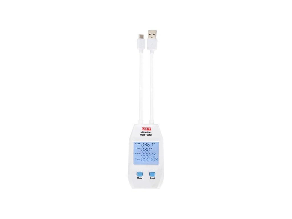 USB tester UNI-T UT658DUALTester USB typu UT658DUAL je tester druhej generácie radu UT658. Môže kontrolovať nabíjačky USB, prenosné zdroje energie (powerbanky), káble typu USB-A a USB-C a ďalšie elektronické nabíjacie zariadenie. UT658DUAL meria výstupné napätie, prúd, energiu, kapacitu, vnútorný odpor zdroja prúdu, D + a D- napätie dátových káblov USB. Ak vstupné merané napätie prekračuje 24 V, alebo meraný prúdu prekročil povolený prúd, zariadenie sa automaticky odpojí a na obrazovke sa objaví "OL". Varovný symbol "LO" sa objaví, keď je vstupné napätie pod 4V. Táto rada je navrhnutá tak, aby bola presná, spoľahlivá, stabilná a prenosná. Sú to skvelé nástroje pre aplikácie ako je overovanie výroby, technické testovanie a kutilov.