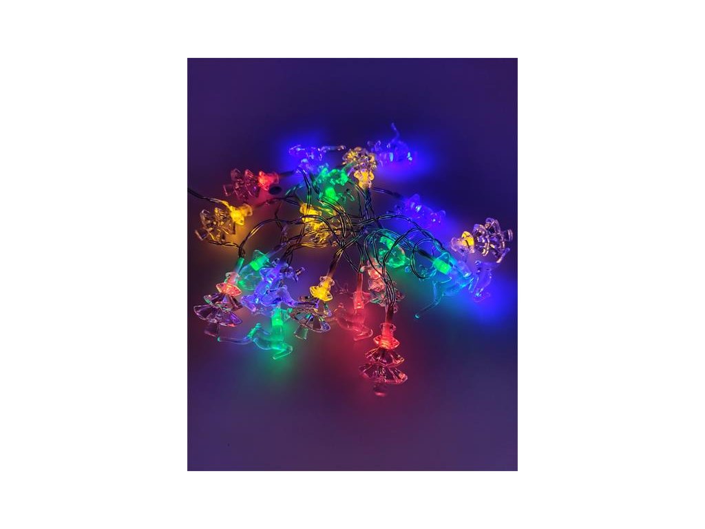 Ozdobte si svoj domov alebo záhradu štýlovou girlandou s 20 LED svetlami v tvare stromov a sobov. Farebné svetlá RGB LED navodia príjemnú sviatočnú náladu a vďaka napájaniu z batérií ho môžete jednoducho umiestniť kamkoľvek - aj bez zásuvky.